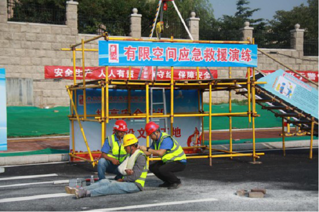 綜合性演練主要是針對(duì)有限空間中毒窒息事故的實(shí)戰(zhàn)演練