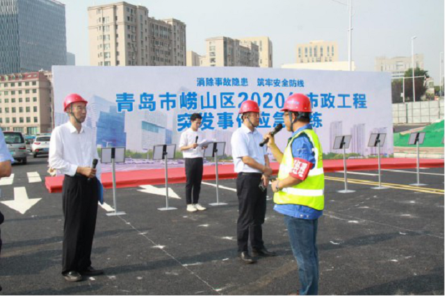2020年9月25日8:40,由青島市嶗山區(qū)城市管理局主辦、青島巨源建工集團(tuán)有限公司承辦的“青島市嶗山區(qū)2020年市政工程突發(fā)事件政企聯(lián)合應(yīng)急演練”在我公司承建的云嶺路(仙霞嶺路—科大支路)市政配套工程施工現(xiàn)場(chǎng)成功舉辦。