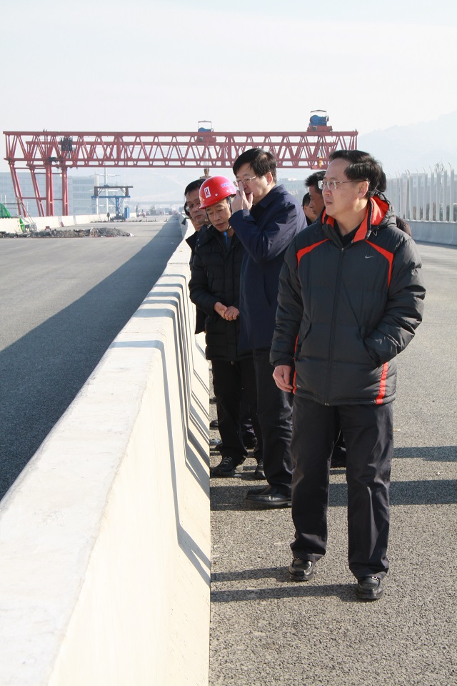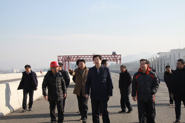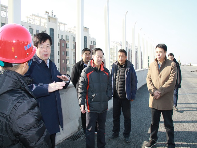青島市住房和城鄉建設局局長陳勇一行視察新機場高速連接線項目 2020年12月6日上午,青島市住房和城鄉建設局局長陳勇一行視察新機場高速連接線項目。陳局長在得知我公司已率先完成橋面瀝青鋪裝這一重大節點后,給予了充分的肯定和贊揚。 在參觀了現場正在進行隔音屏安裝施工后,陳局長指出務必保證隔音屏障質量,在保證安全的前提下,加快工程進度。